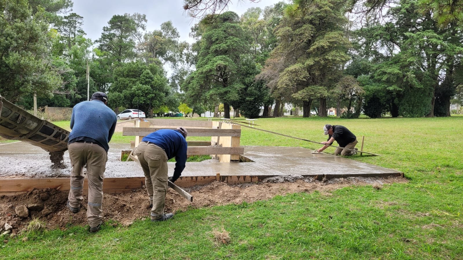 Personal de Obras Públicas procedió al hormigonado de la base y la estructura de la mesa.