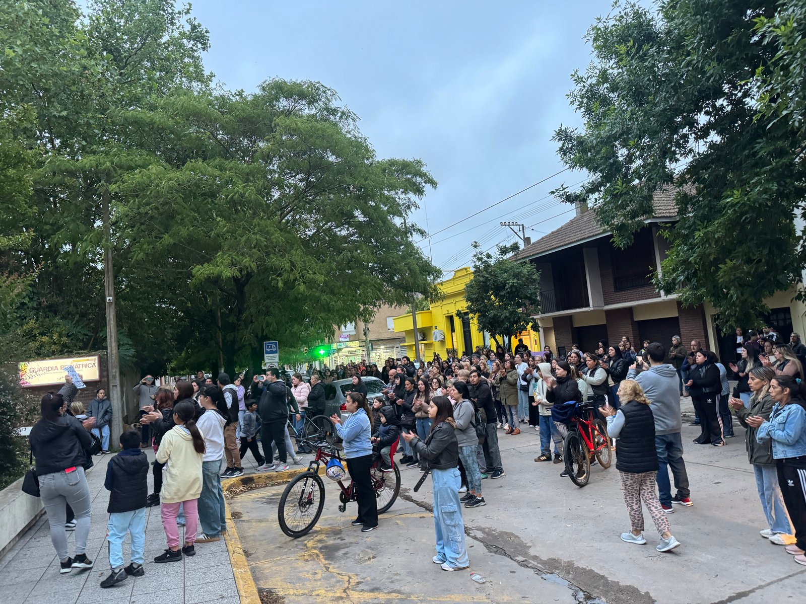 La concentración comenzó en Plaza Libertad, donde los presentes encendieron velas en homenaje al pequeño. Minutos más tarde, la columna avanzó por avenida Favaloro en dirección al Hospital Municipal Felipe A. Fossati, en medio de aplausos, carteles y reiterados reclamos de “Justicia, justicia”.