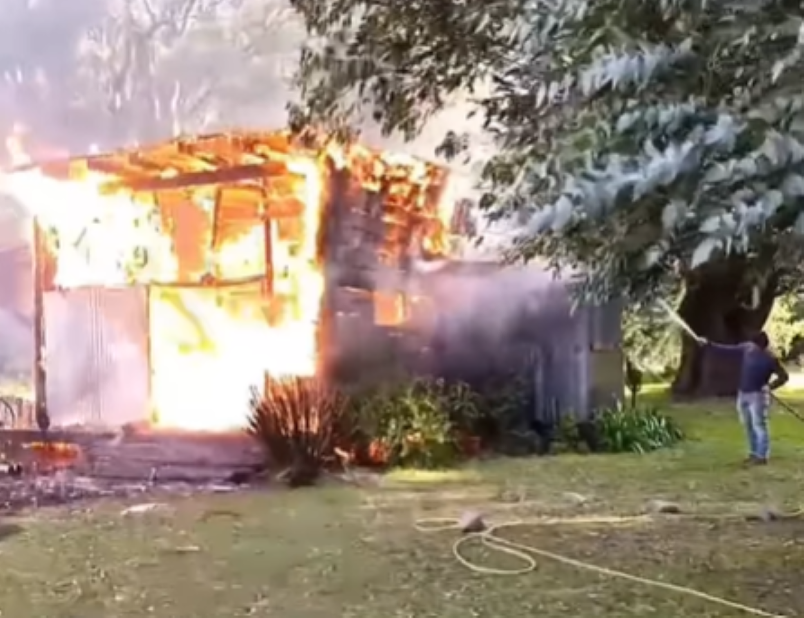 Antes del arribo de los Bomberos Voluntarios, quienes ya se encontraban camino al lugar, vecinos cercanos intentaron contener el fuego por sus propios medios. Sin embargo, las pérdidas serían totales, según las primeras estimaciones.