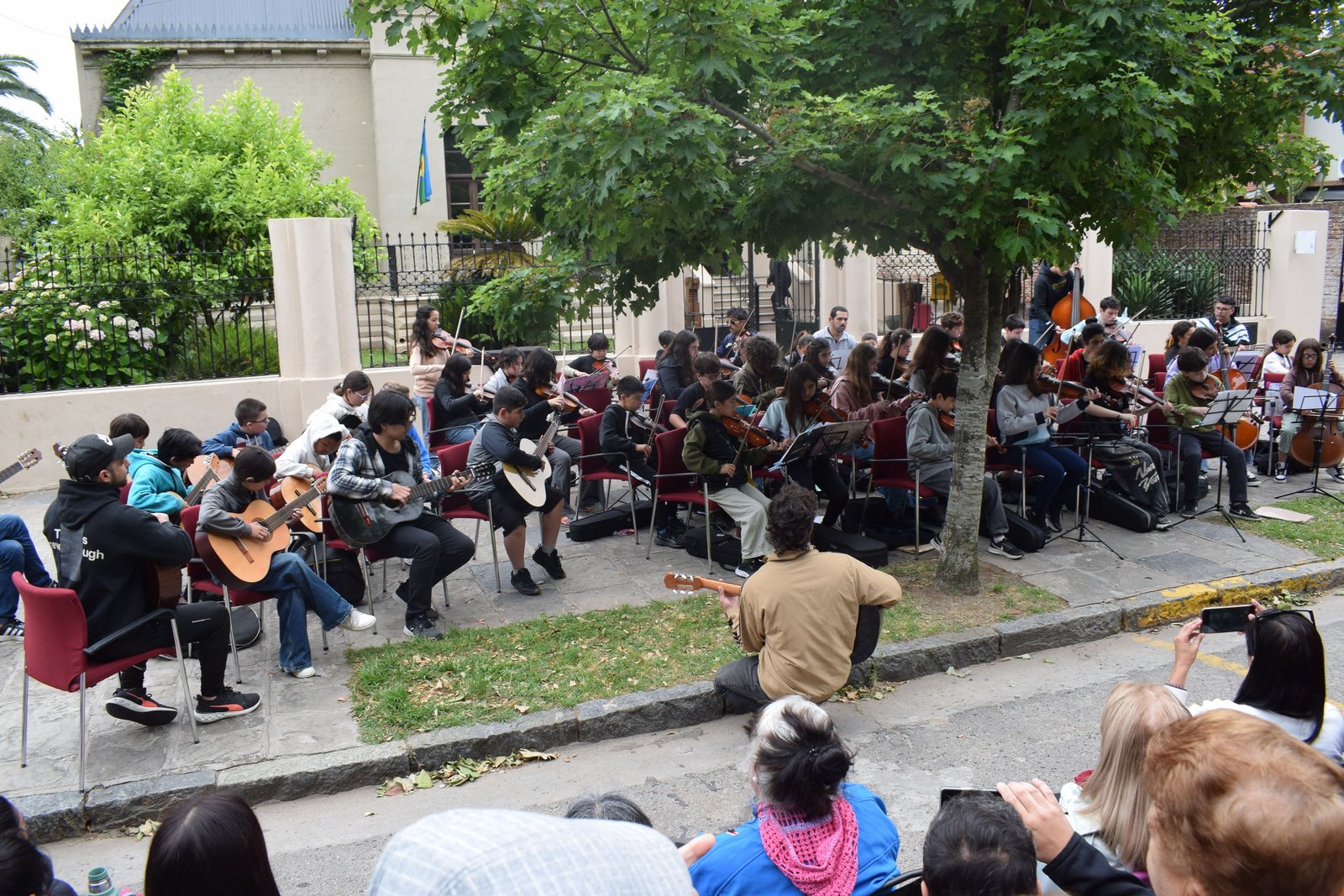Con destacada afluencia de público, la Orquesta Escuela Infanto Juvenil llevó adelante un particular cierre de año con una presentación al aire libre, montada en la vereda de la Casa de la Historia y la Cultura del Bicentenario. La propuesta convocó a numerosos vecinos que se acercaron para acompañar el cierre musical de la temporada.