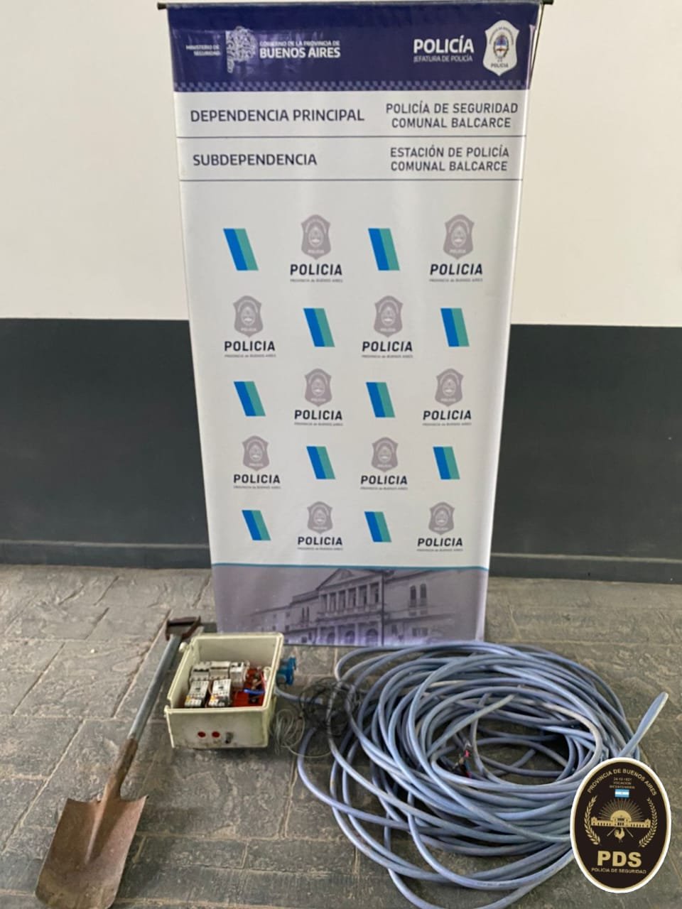 Entre sus pertenencias se secuestró un rollo de 57 metros de cable subterráneo de cuatro filamentos de 4 mm de espesor y una pala de punta con mango metálico, utilizada para el corte del material.