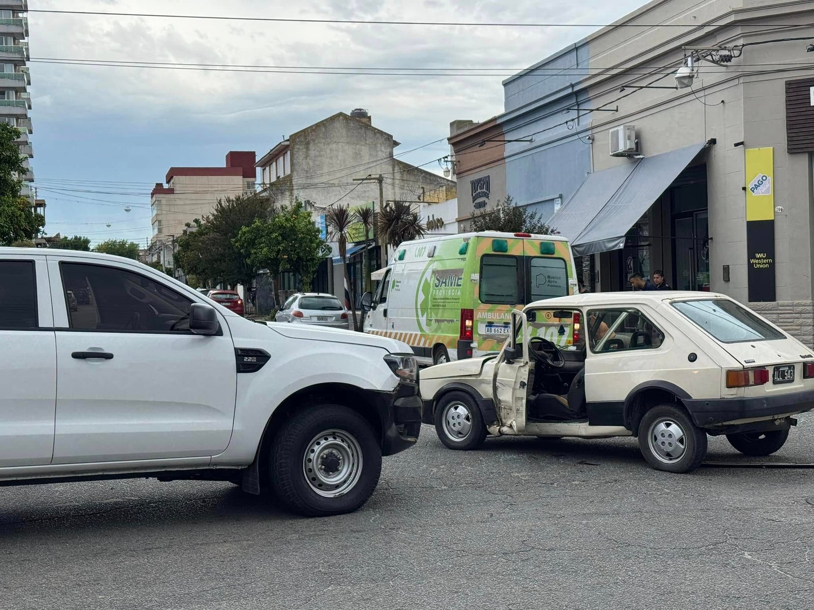 El siniestro se produjo en la intersección de calles 20 y 21, donde colisionaron una Ford Ranger, que circulaba por calle 20, y un Fiat 147, que lo hacía por calle 21.